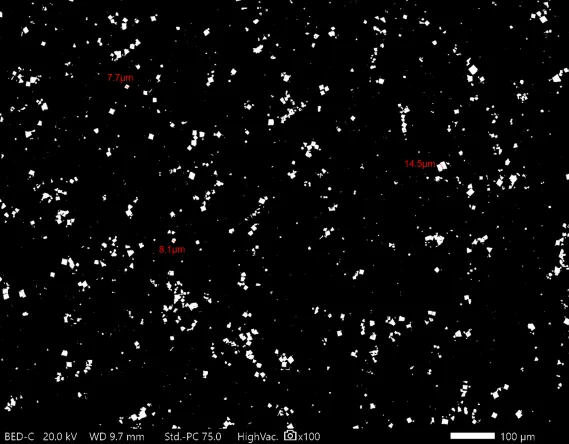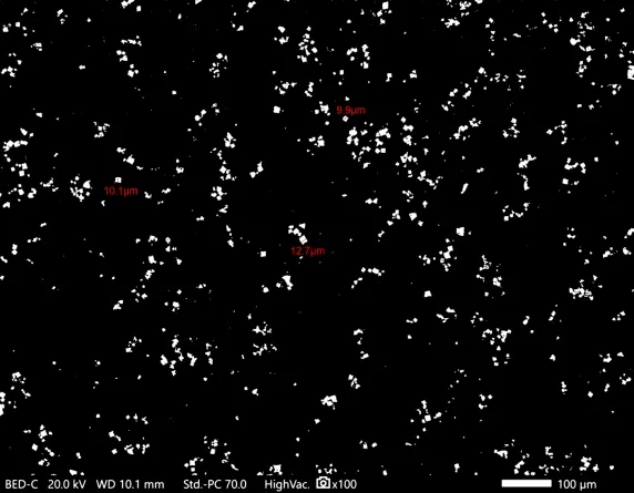 1. 급속냉각주조를 통해 제품의 조성이 균일해집니다. 디 알3Sc 입자는 뭉침 없이 분산 분포되어 있으며 크기가 20μm 미만입니다.
